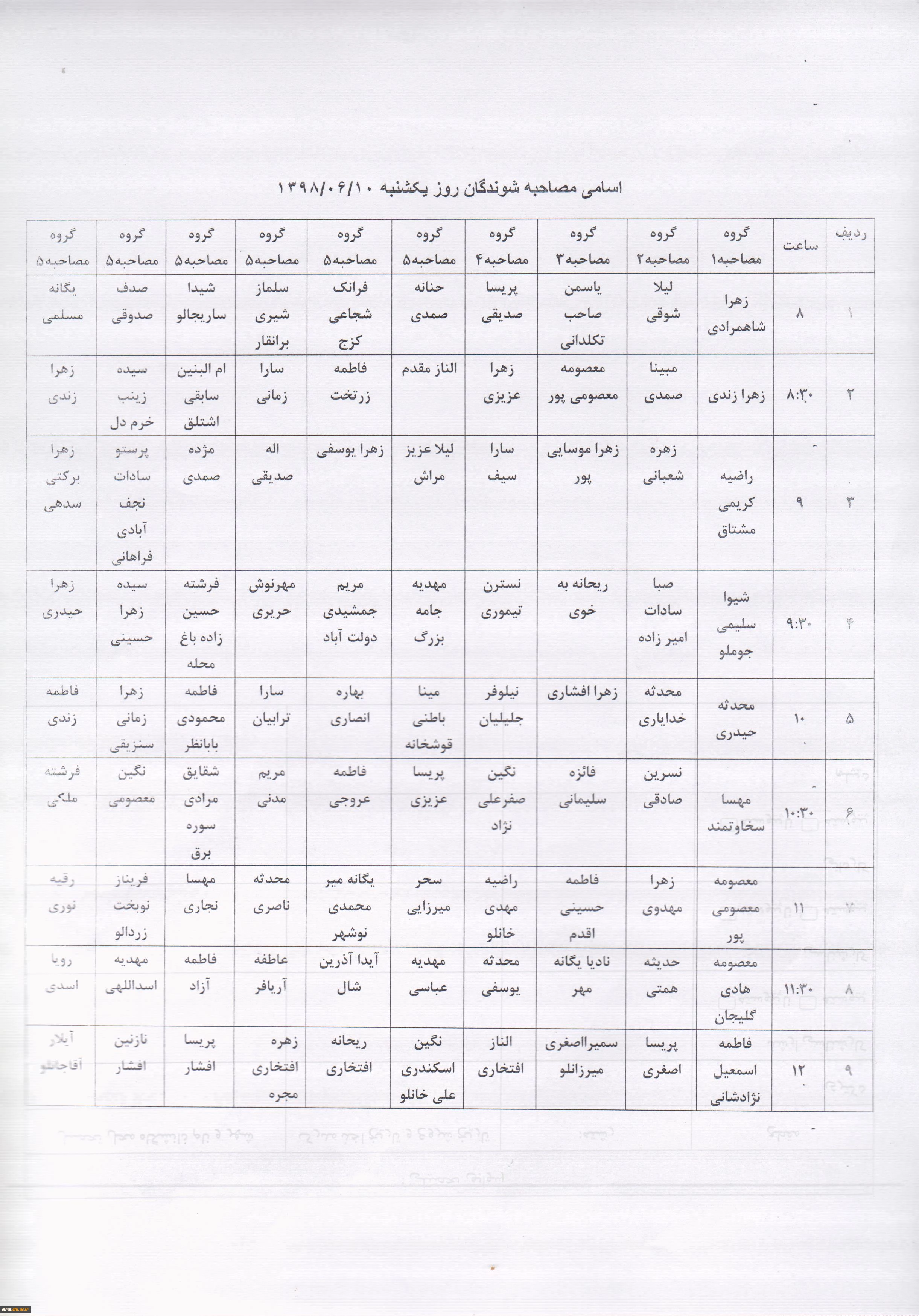 امتیاز دهید : زمانبندی حضور داوطلبین جهت انجام مصاحبه روز یکشنبه مورخ 98/06/10 3 شنبه 9 شهریور 1398 ساعت 8:30