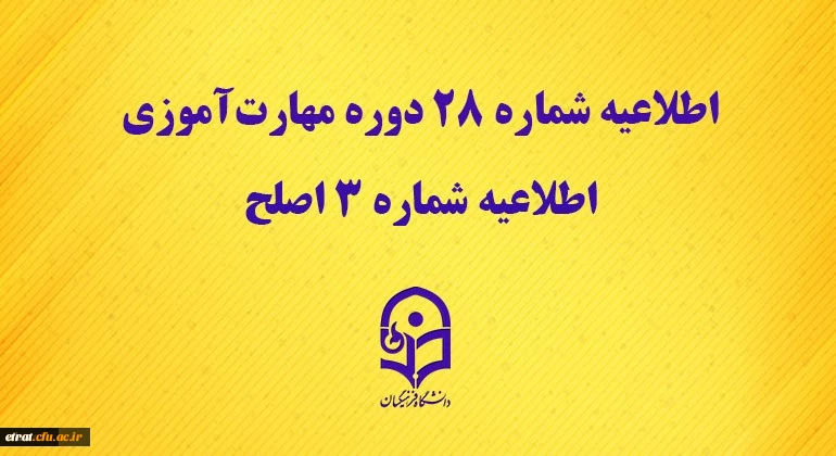 مرکز سنجش شایستگی های حرفه ای منابع انسانی دانشگاه منتشر کرد: اطلاعیه شماره 28 دوره مهارت آموزی، اطلاعیه شماره 3 اصلح 2