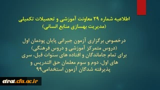 اطلاعیه شماره 29 معاونت آموزشی و تحصیلات تکمیلی (مدیریت بهسازی منابع انسانی) 2
