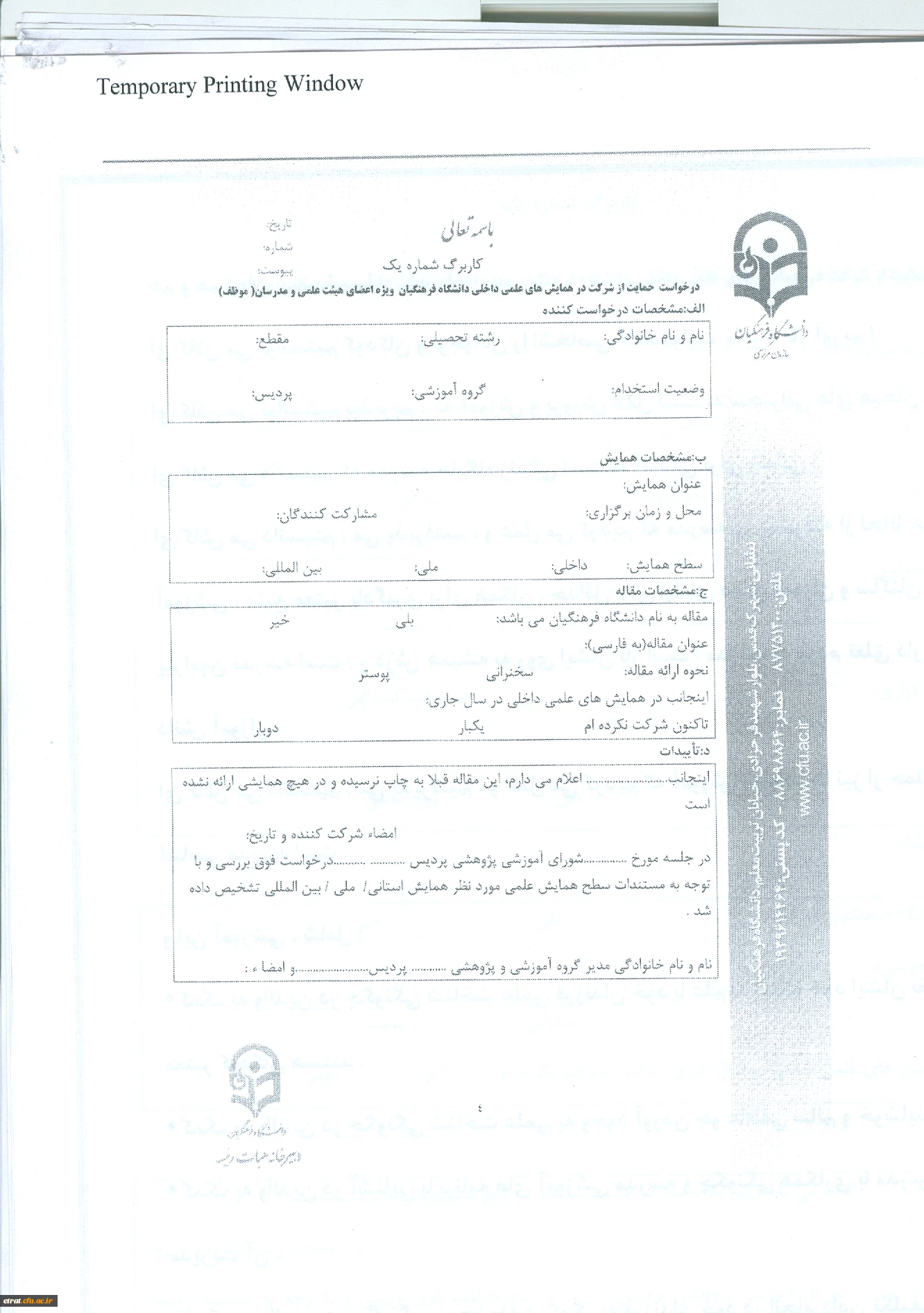 بخشنامه «شیوه نامه حمایت از شزکت مدرسان و اعضای هیئت علمی در همایش های علمی داخل کشور» 4