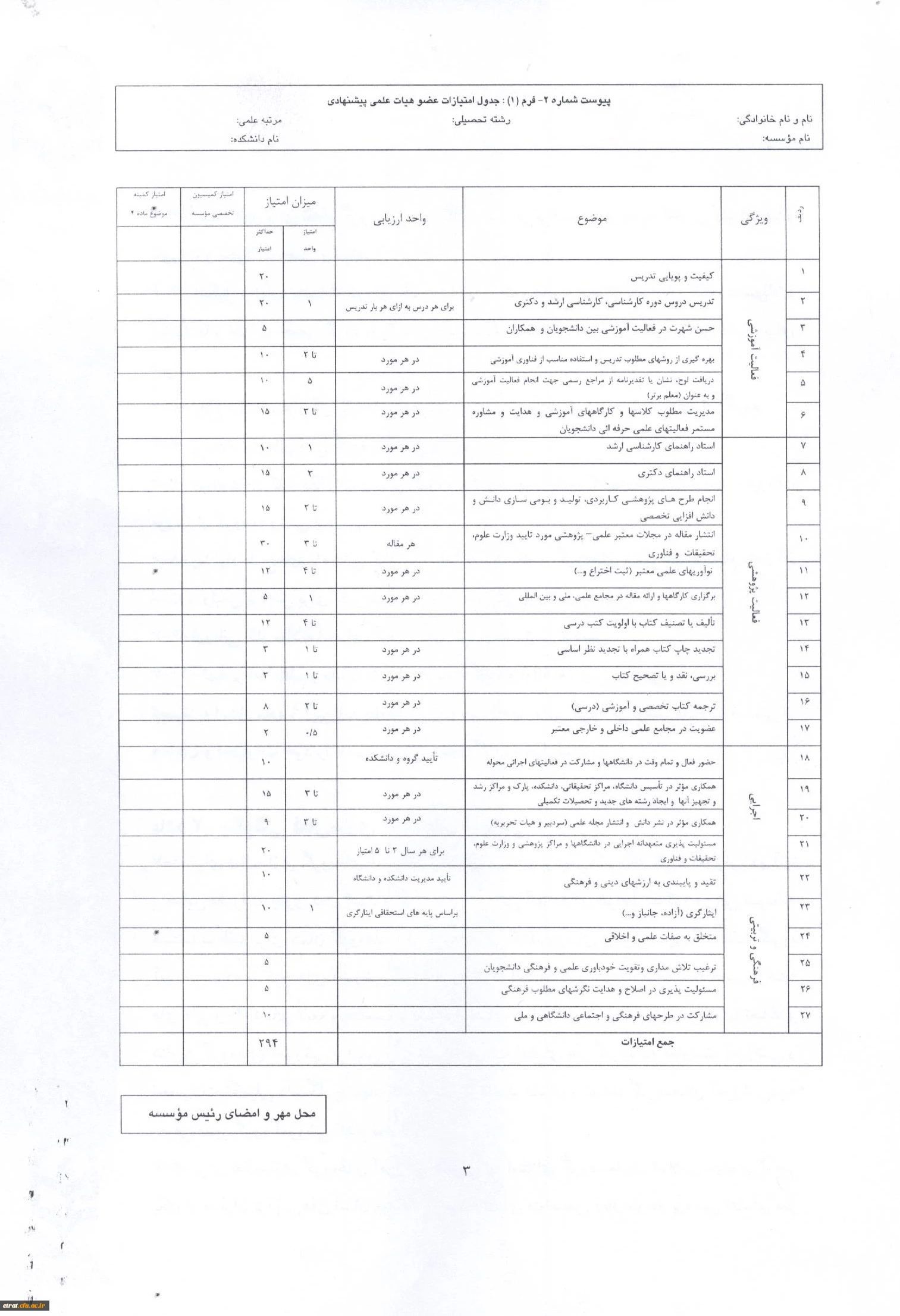 دستور العمل نحوه انتخاب اعضای هیئت علمی نمونه 3