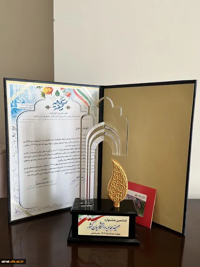 کسب رتبه اول در رشته مقاله نویسی در ششمین جشنواره صحیفه سجادیه دانشگاهیان کشور دانشجومعلم مرکز عترت، سرکار خانم *نفیسه عباسی* 2