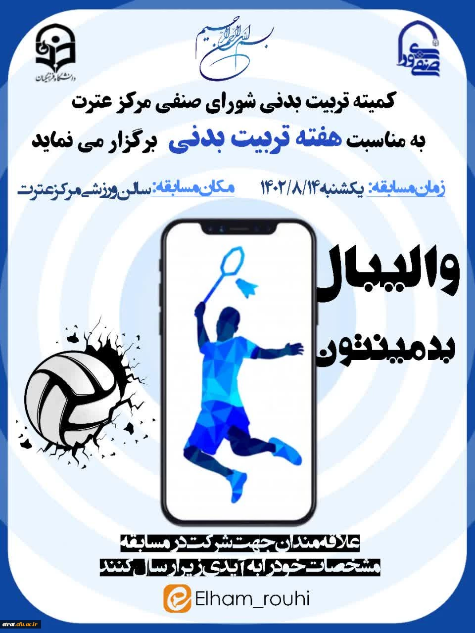امتیاز دهید : مسابقات والیبال و بدمینتون به مناسبت هفته تربیت بدنی ویژه دانشجو معلمان 2 چهارشنبه 24 آبان 1402 ساعت 23:05