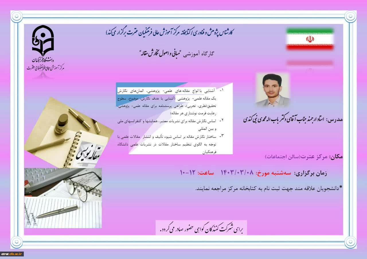 برگزاری کارگاه آموزشی (مبانی و اصول نگارش مقاله) 2